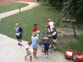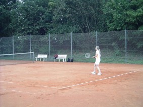 Familie Decker kam dann auch schon, der Armin noch leicht gehandicapt vom ersten Volksfestabend !!!! Kuchen uns Salate wurden fleissig gebracht. Traute Zweisamkeit am Tennisplatz